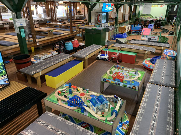 店内には鉄道模型はもちろん、本やおもちゃ、キッズスペースもあり、