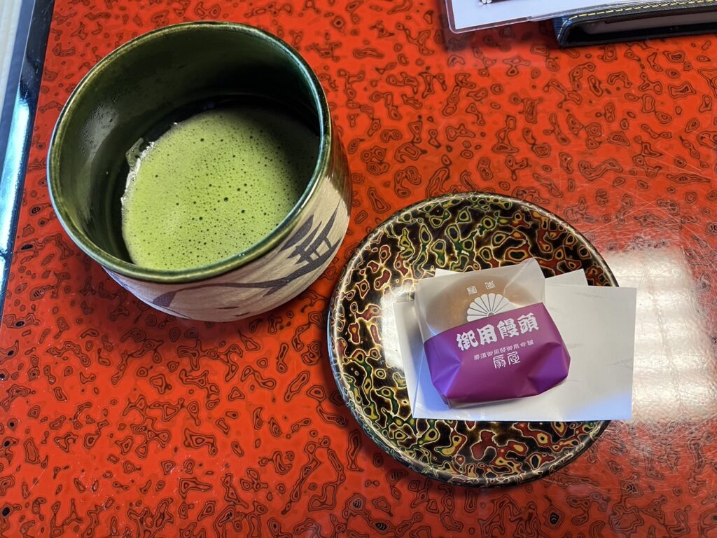 本格的なお抹茶と茶菓子を用意してくれました。