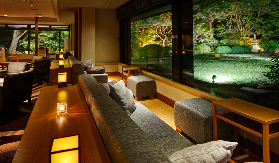 日本庭園を眺めることができるラウンジでは、ドリンクサービスがあります。